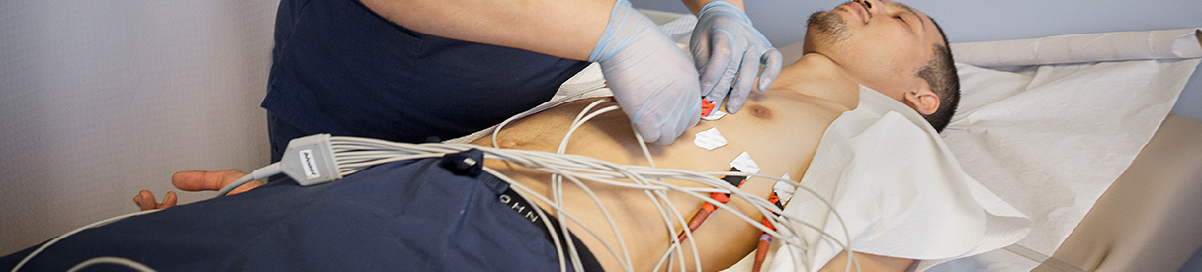 Standardní 12 svodové EKG snímá elektrickou aktivitu srdce v čase pomocí elektrod umístěných na hrudi a končetinách. EKG provádíme k vyloučení poškození srdečního svalu jak u akutních obtíží, tak v rámci preventivních prohlídek.